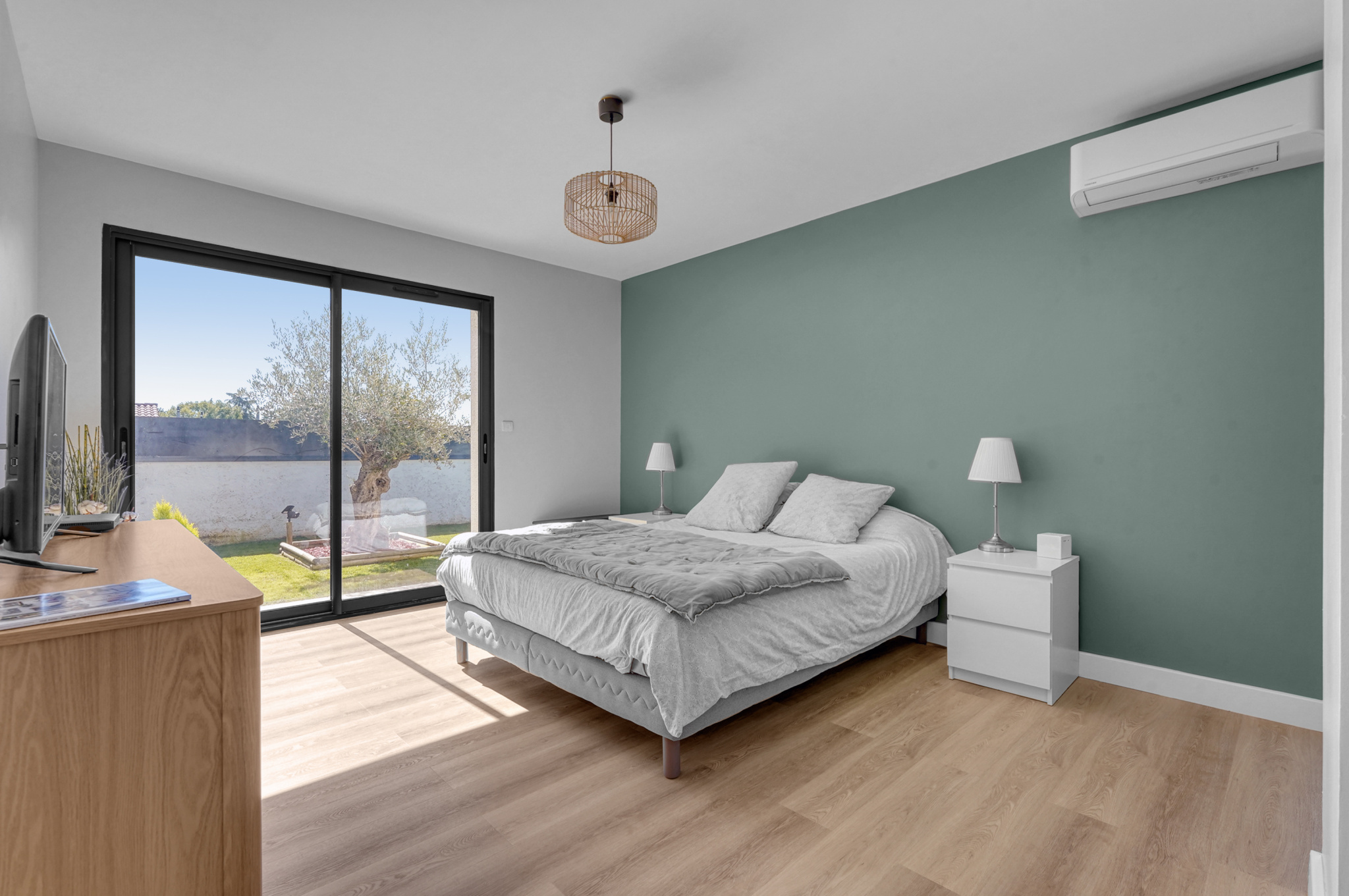 Les prestations de qualite sont : menuiseries alu, baies vitrées à galandage, chauffage au sol rafraichissant avec pompe à chaleur, arrosage automatique, panneaux photovoltaiques, caméra de sécurité, un puits et 2 récupérateurs d'eaux pluviales.