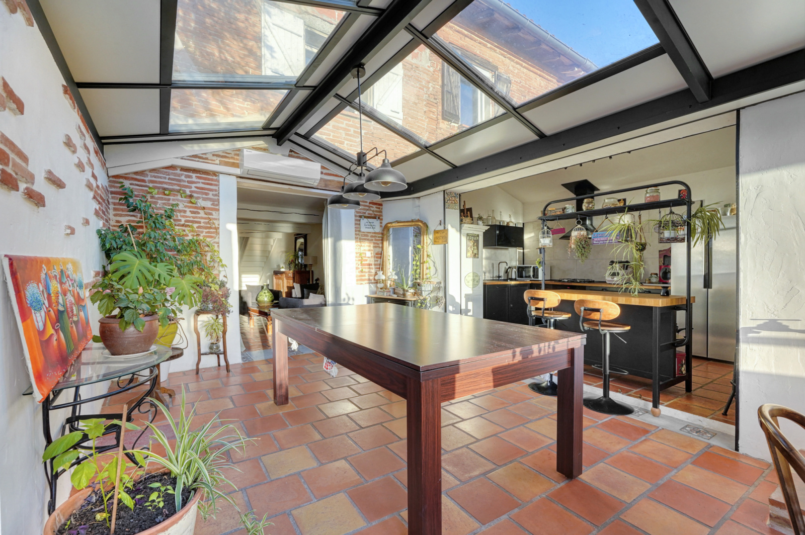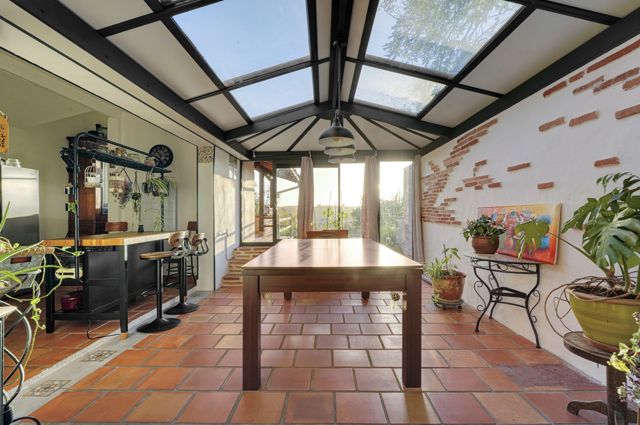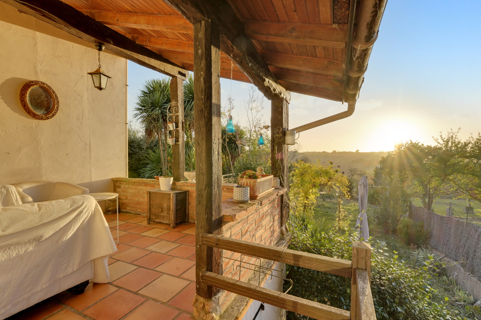 Vous apprécierez une terrasse pleine de charme et couverte avec en point d'horizon sur le coucher de soleil, un jardin piscinable, un atelier de bricolage et un double garage de 50 m2. Climatisation réversible.