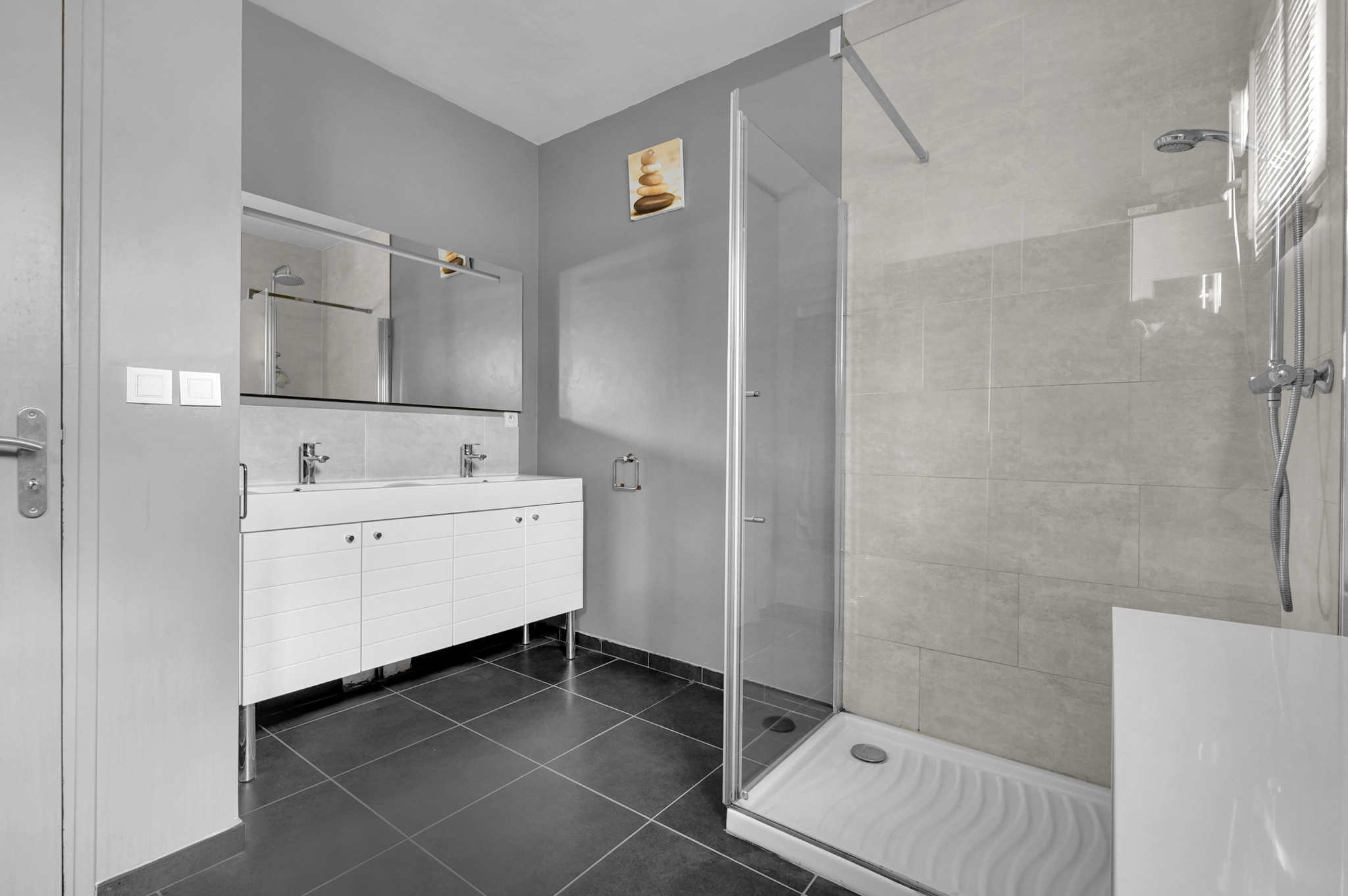 Au niveau inférieur (idéal pour enfants) vous trouverez 2 grandes chambres avec une belle hauteur sous-plafond, une salle de bain avec baignoire, un grand cellier/buanderie avec de nombreux rangements, un garage de 66 m2 en sous-sol entièrement carrelé et isolé.