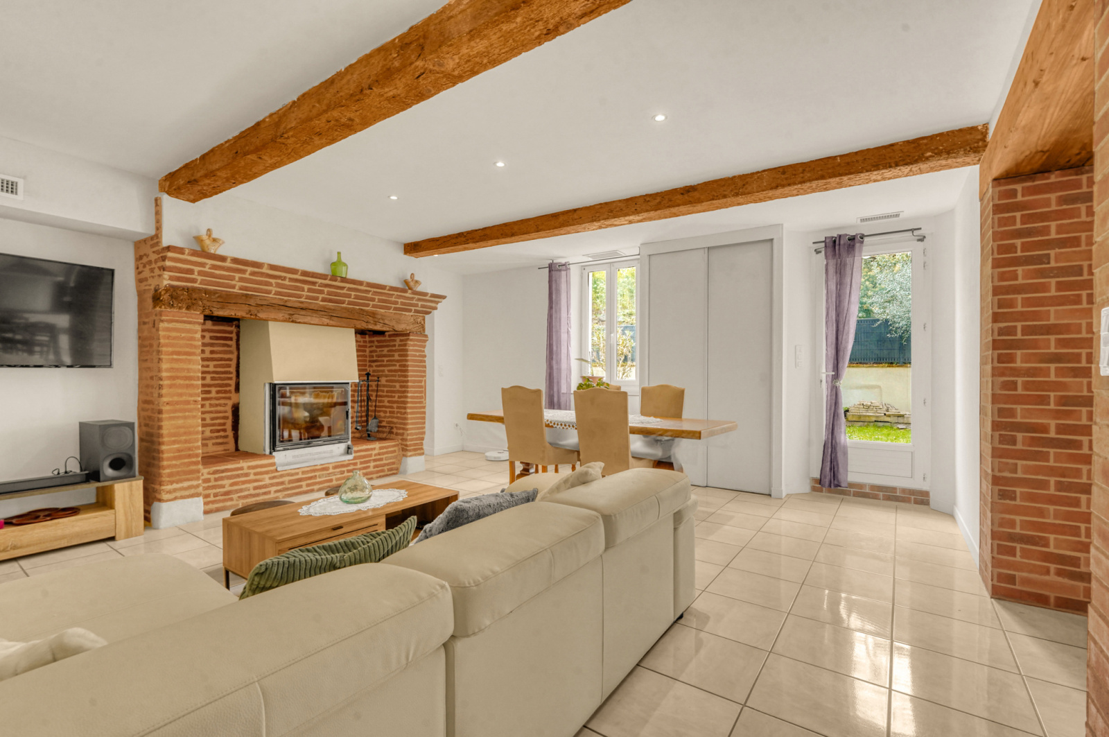 Le séjour de 45 m ², agrémenté d'une cheminée avec insert, constitue un véritable espace de vie convivial.